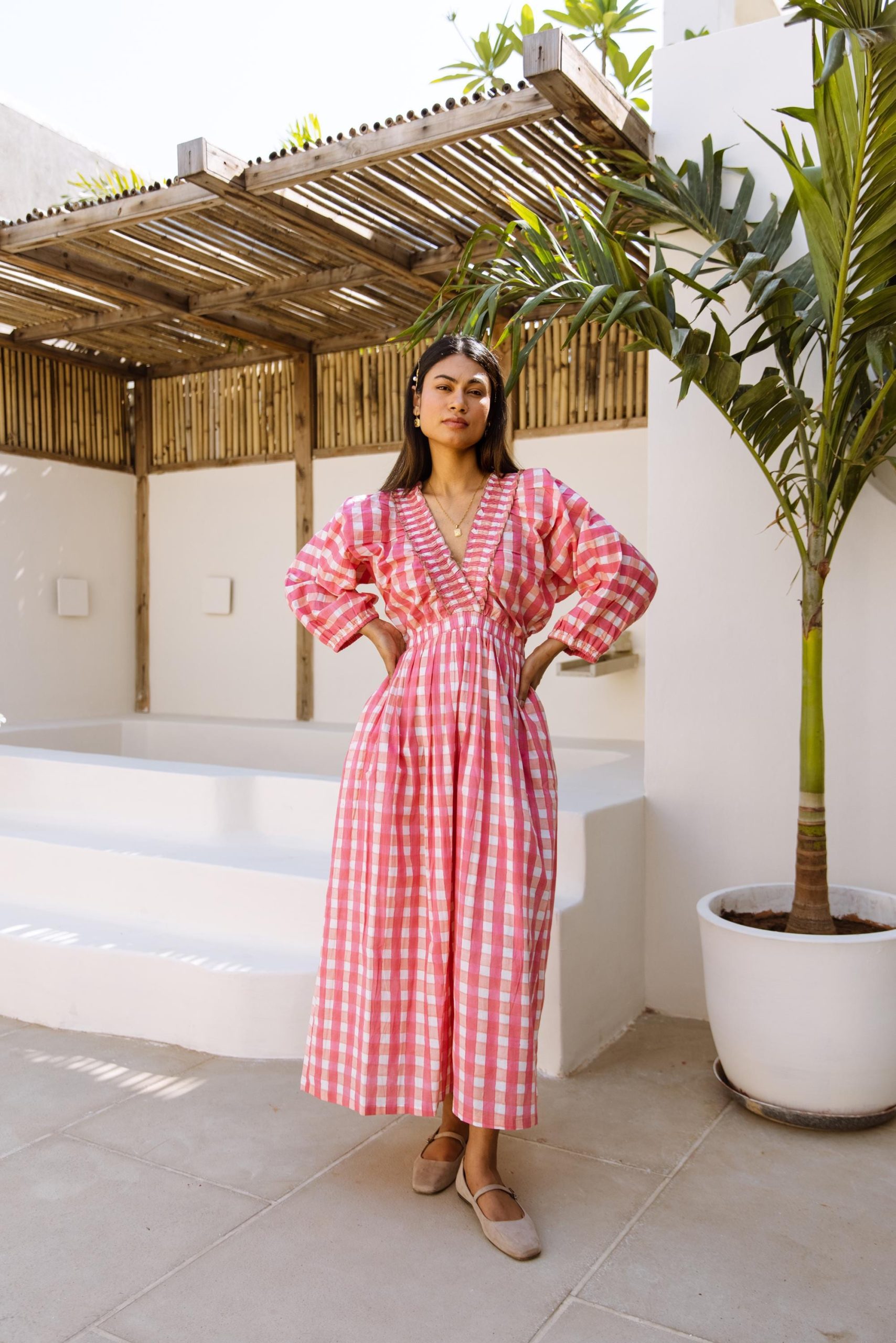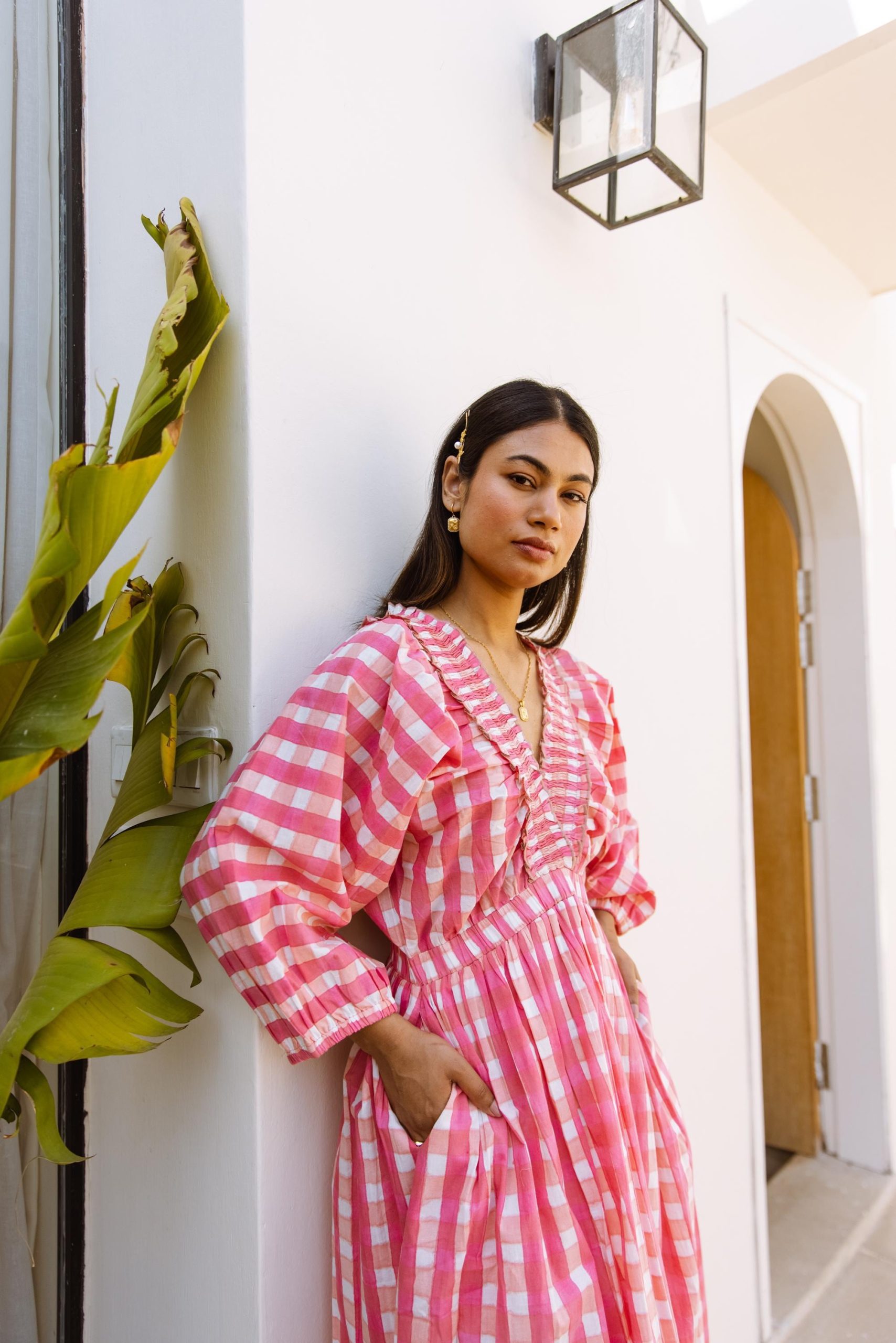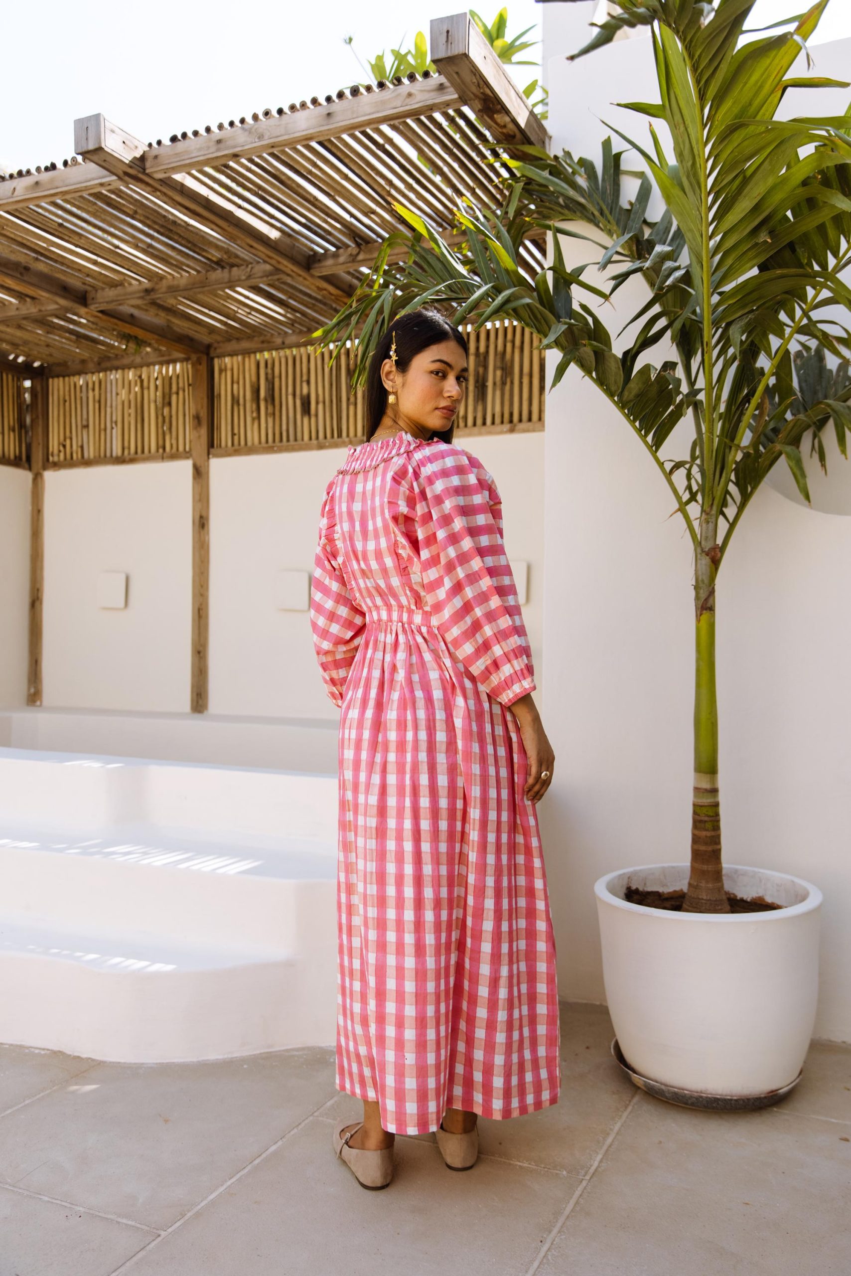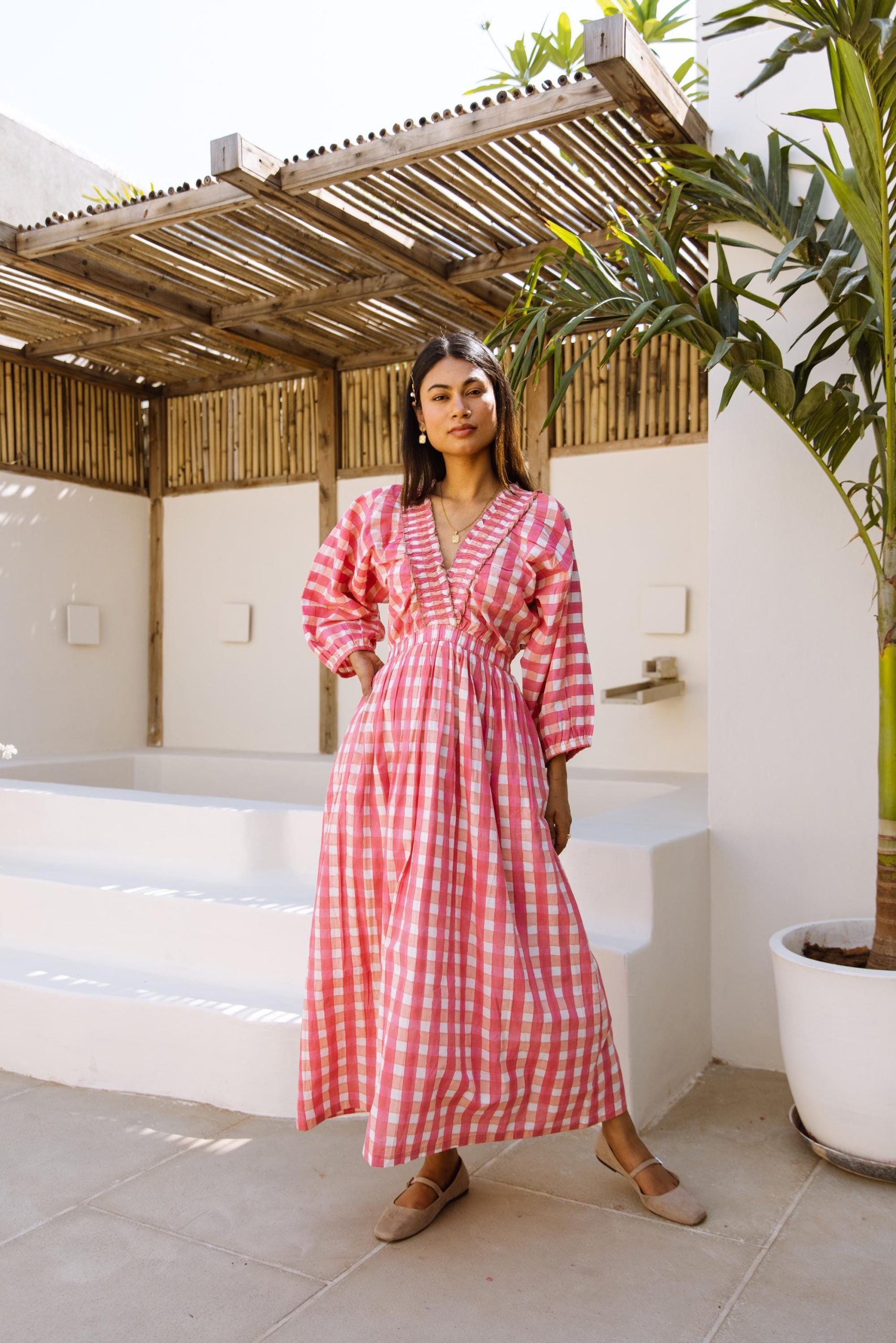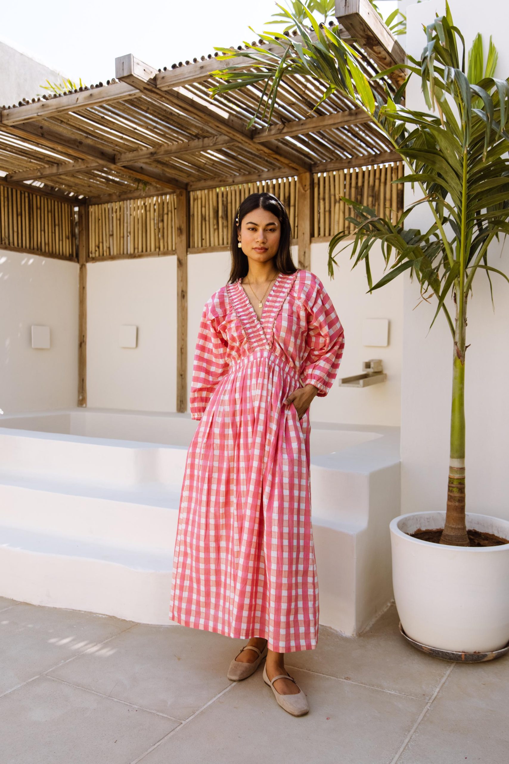 The Piper Dress Pink Gingham Block Print