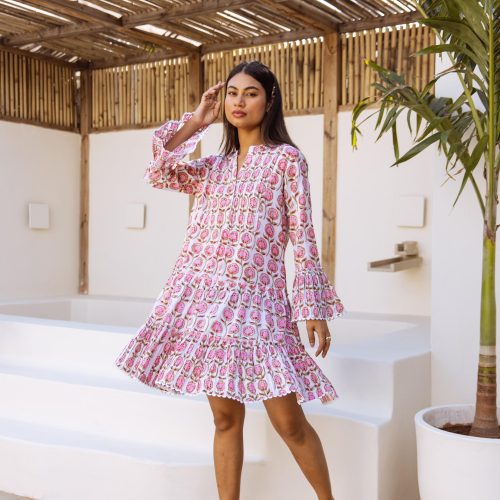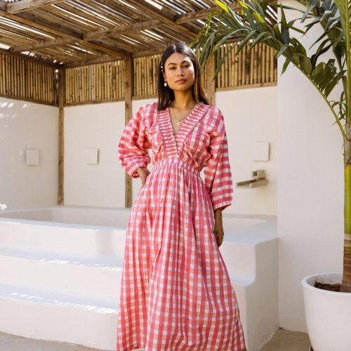 The Piper Dress Pink Gingham Block Print