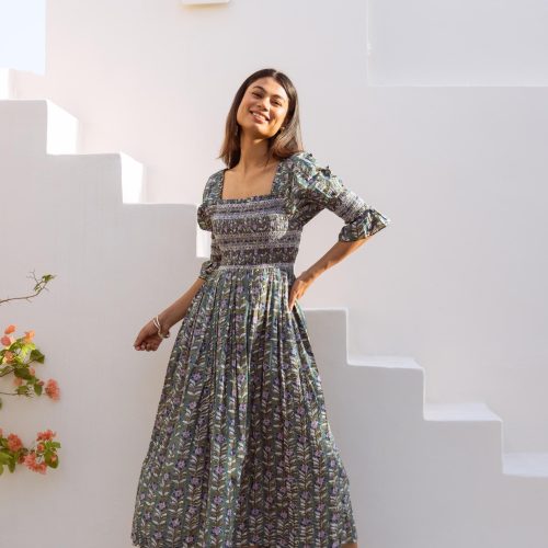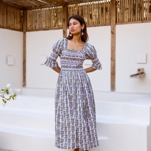 The Veda Cotton Block Print Dress Smokey Taupe